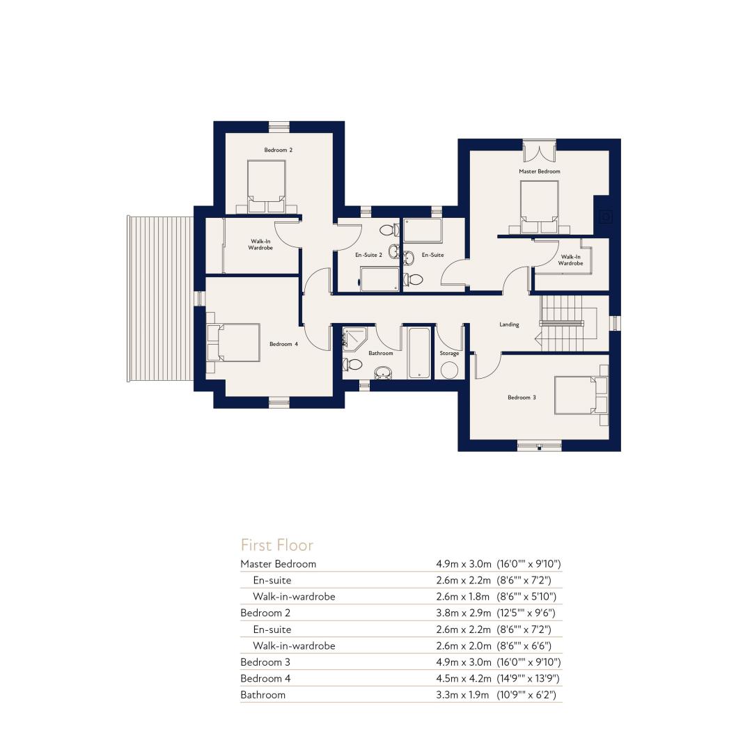 Up the solid oak staircase is the light and airy master bedroom with a Juliet balcony, walk-in wardrobe and en-suite. Another large bedroom is across the hall with breath-taking views, en-suite and walk-in wardrobe. Two additional large bedrooms and a linen store are near the family bathroom, with a freestanding bath and waterfall shower.