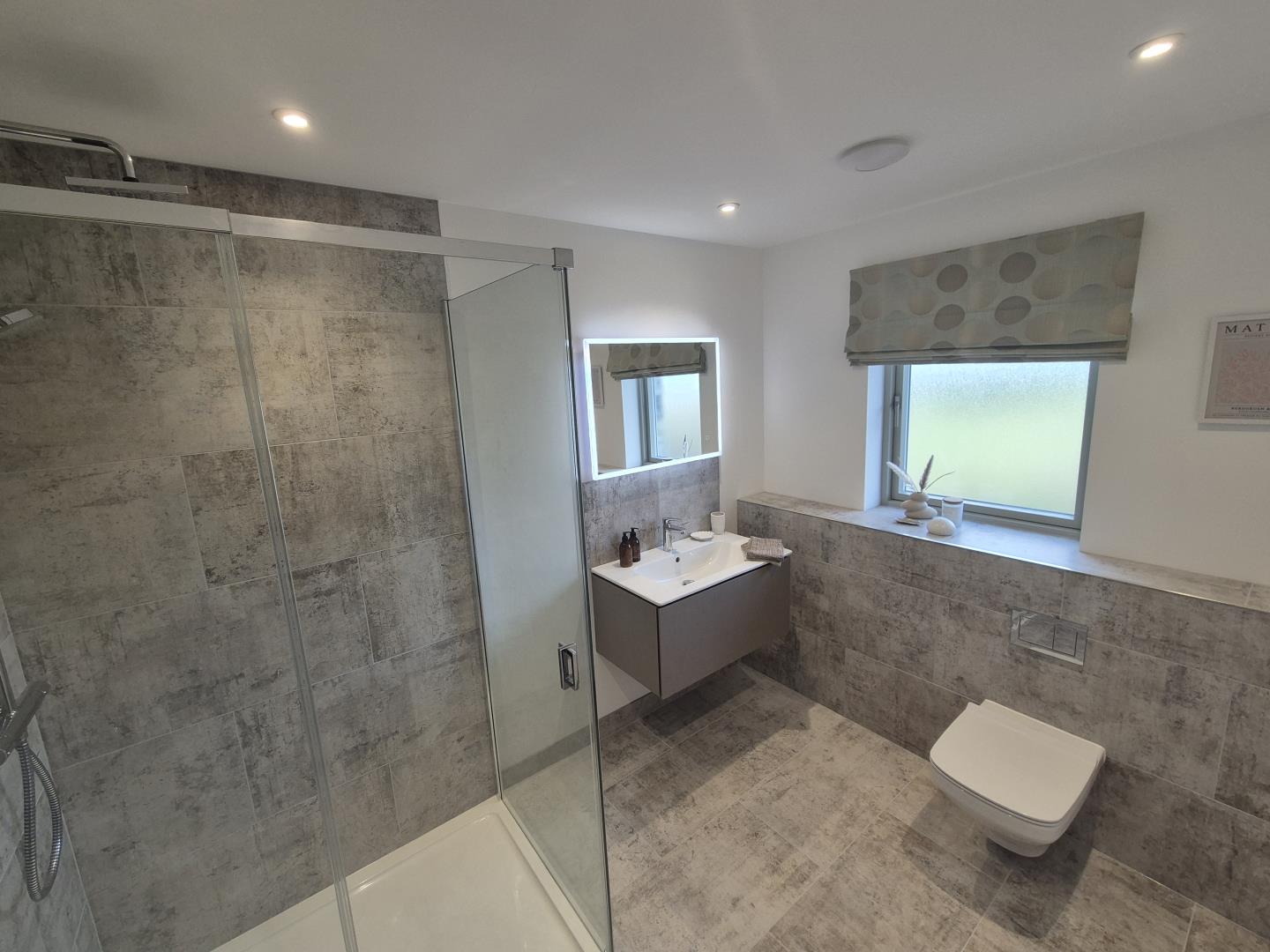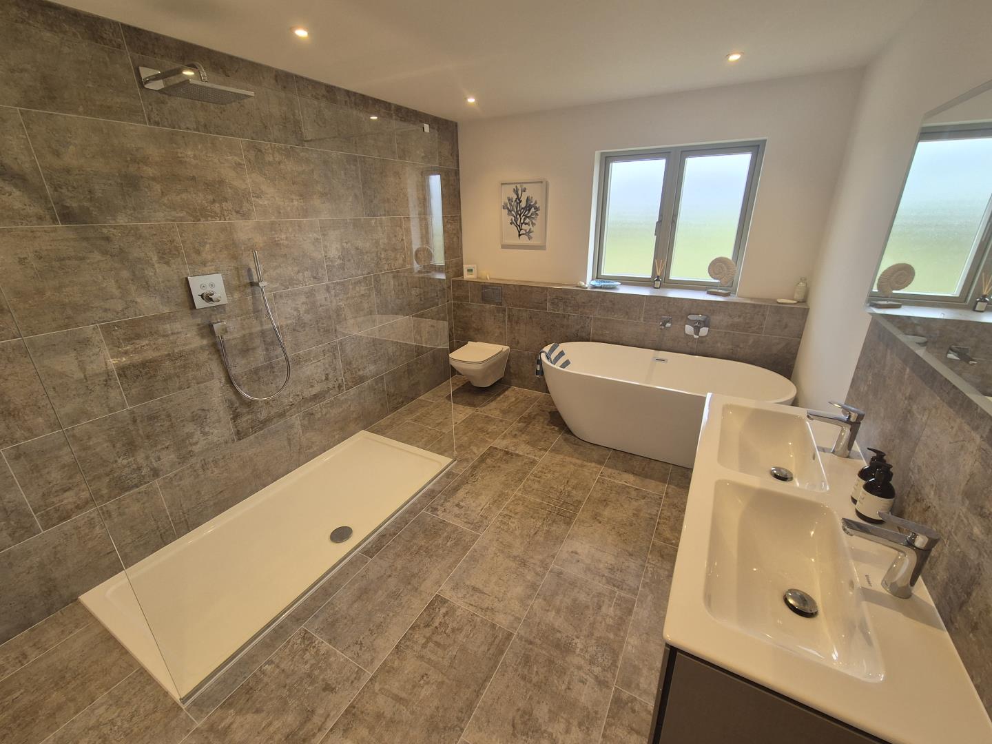 Spacious. Underfloor heating. Storage. Space and plumbing for washing machine. Space and plumbing for tumble dryer. Rectangular room. Porcelain Tiles to floor. Door to side. Windows to rear. Recessed spot lights.