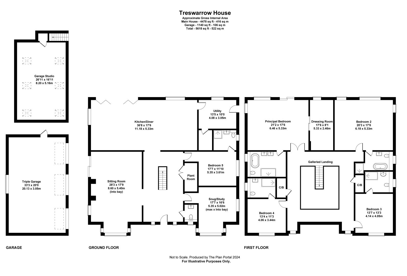 Treswarrow House is a recently constructed and completed luxurious substantial five bedroom and five en-suite bathroom detached family home set in the picturesque North Cornwall countryside, yet just a short drive to the stunning beaches at Rock and Polzeath on the Atlantic Coastline. Treswarrow House offers spacious and adaptable open plan living with a combination of traditional construction and contemporary craftsmanship built to exacting standards featuring locally sourced Cornish materials. Natural light floods throughout the property from the impressive hallway with a glass bespoke galleried landing. The impressive lounge features a contemporary wood burning stove. The spacious open plan family room and kitchen opens out via bi-fold doors to a South facing garden and an extensive tiled al-fresco living patio area. The kitchen is fitted to a high standard with an abundance of storage and Bora and AEG appliances, including two dishwashers. Adjacent to the kitchen is a spacious utility room with integrated appliances and a large walk-in pantry/wine cellar. The principal bedroom suite comprises a luxuriously fitted bathroom, a sizeable dressing room and a Juliet balcony with stunning views. The ground floor double bedroom with en-suite is well situated for guests. The property also benefits from a detached triple bay garage with a large converted room above offering potential for additional accommodation, an artist studio/workshop, games room or extensive storage. This stunning property is approached along a long private gravel driveway with more than ample parking for several vehicles and marine storage. Set within a 0.75 acre plot with an additional 2.75 acre paddock adjoining the property available by separate negotiation. <br/><br/>The local area offers a wealth of amenities with beaches at Rock, Polzeath and Daymer for family days, walking, surfing or sailing. Excellent restaurants and pubs, such as The Mariners Pub in Rock, Restaurant Nathan Outlaw in Port Isaac, Rick Stein's Seafood Restaurant and Paul Ainsworth's No. 6 in Padstow, St Enodoc Golf Club and the charming church at St. Endellion renowned for its cultural events.