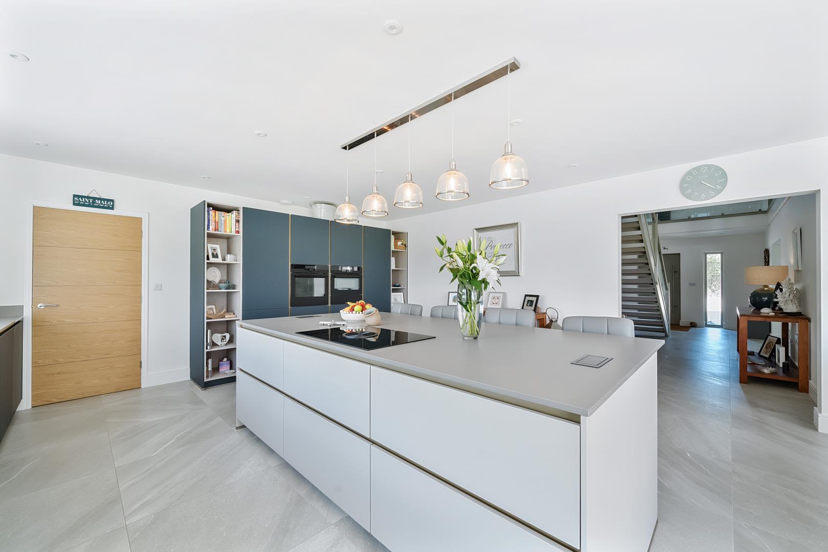 Including matching island unit. Fitted with a matching range of base & eye level units. Dishwasher. Hob - Induction. Underfloor heating. Porcelain Tiles to floor.