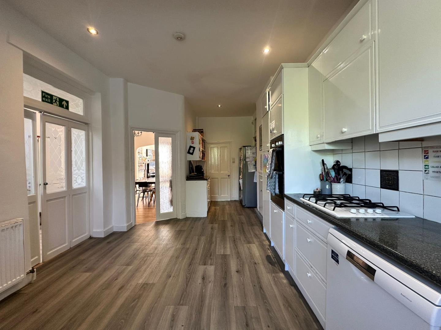 The lounge has hard flooring, a large bay window boasting natural light and looking onto Talbot Road, feature fireplace and fitted storage units either side of the fireplace