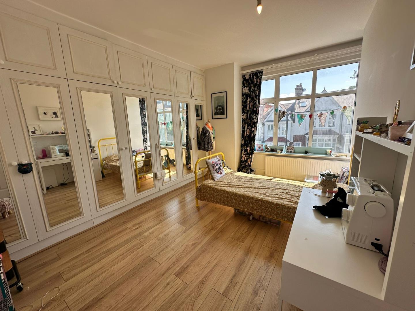 Further to the right of the stairwell on the landing is another large bedroom. This bedroom has wooden flooring, floor to ceiling wardrobes and a view of the rear.